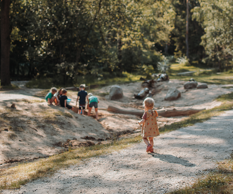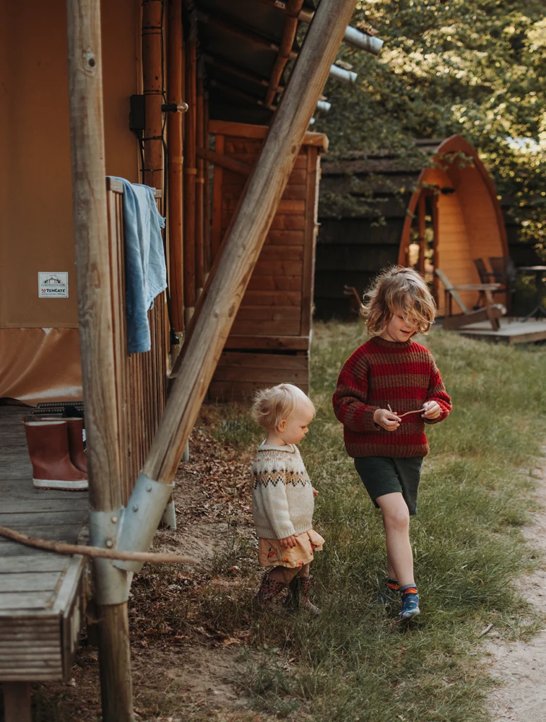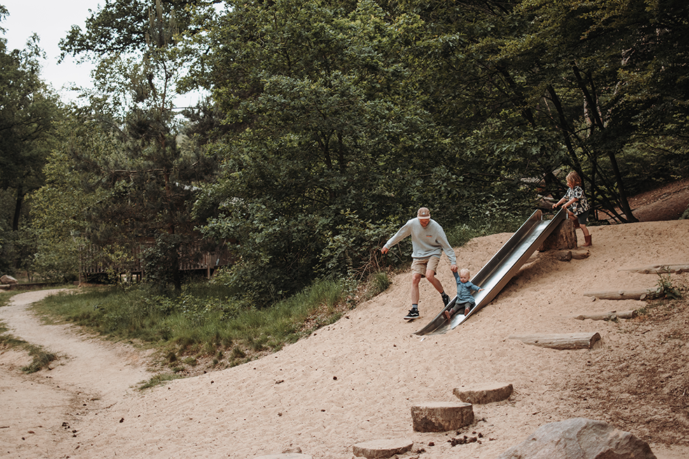 ‘Het park is opgedeeld in drie delen. Wij stonden in het eerste gebied en keken uit op de waterpomp met boomstammen. Ole was daar hele dagen zoet mee en Sarah liep gezellig achter hem aan. We hadden twee dolgelukkige én heerlijk vieze kinderen. Er is op de buitenplaats ook een blotevoetenpad en een speeltuin bij het terras van het restaurant.’