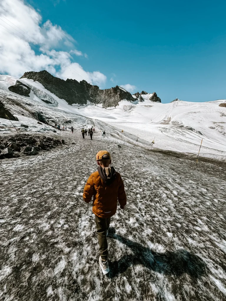 In 45 minuten stijg je van 1.480 naar 3.211 meter hoogte. De kleine gekleurde cabines hangen in groepjes van vier aan een dikke staalkabel — alleen al de rit is een belevenis. Boven kun je de gletsjer bewonderen en een ijsgrot bezoeken met ijssculpturen, erg leuk voor kinderen.