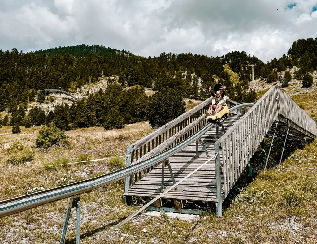 - Luge Monty Express – een razendsnelle monorail-rodelbaan waarbij je zelf de snelheid bepaalt. Kinderen onder 6 jaar rijden gratis mee tussen de benen van een volwassene. Ons zoontje vond het te gek! Bovenop de berg is ook een berghut met een klein speeltuintje.