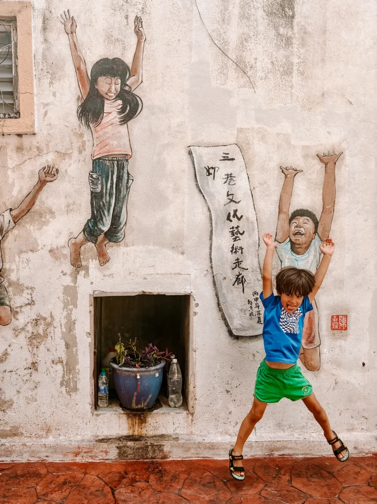 Onze jongens vonden het geweldig om als een soort speurtocht op zoek te gaan naar de volgende muurschildering. Omdat het in Ipoh een stuk rustiger is dan in andere Maleisische steden, kun je rustig rondlopen en foto’s maken zonder drukte.