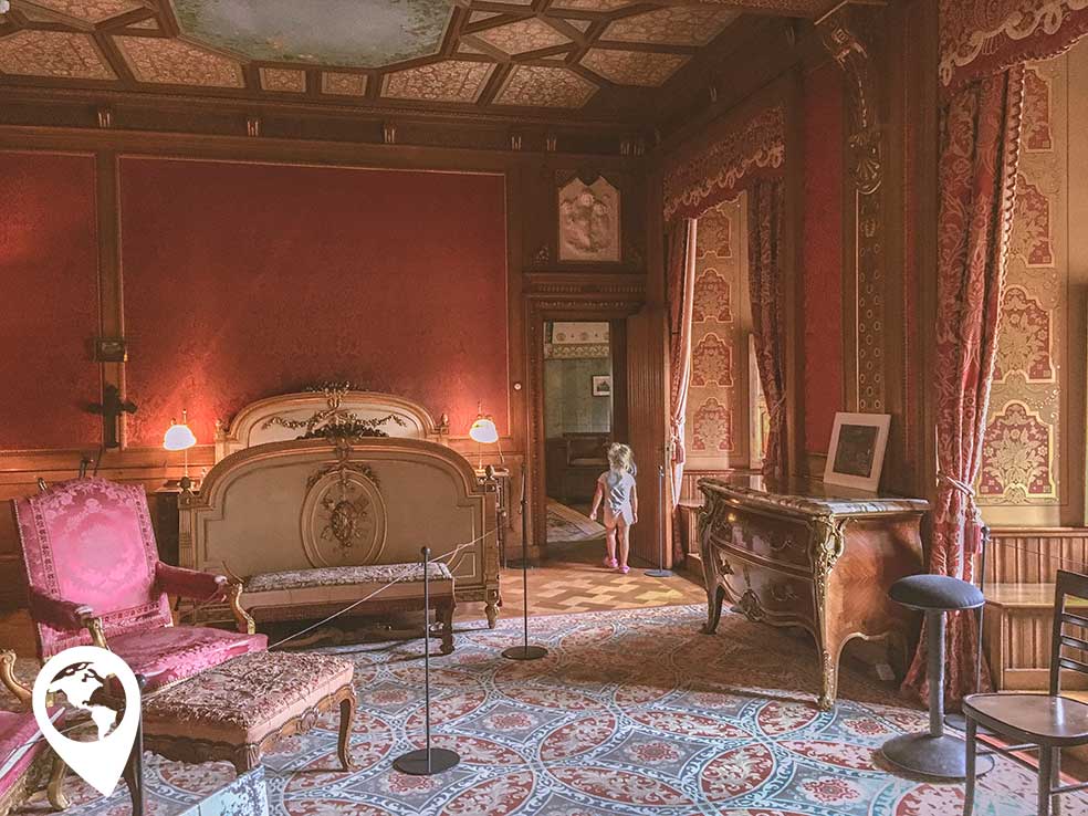 We starten in het kasteel. Bij de grote entreetrappen liggen al twee leeuwen en grifioenen op ons te wachten. ‘Mogen we ze aaien mam?’ Dat begint al goed. De speurtocht leidt ons door de grote entreehal, de bibliotheek, de ridderzaal, de balzaal, verschillende slaapkamers, een kapsalon (ja echt) en de keuken. En overal zitten dieren verstopt om ontdekt te worden. In de ornamenten op het plafond. In prachtige wanddoeken. Opgezette beesten in kasten. De vragen worden begeleid met wat info over de ruimtes waar we ons in bevinden. Leerzaam en leuk. Er wordt geen moment geklaagd dat het saai is of dat ze moe zijn. En ook wij hebben de tijd om rustig om ons heen te kijken.