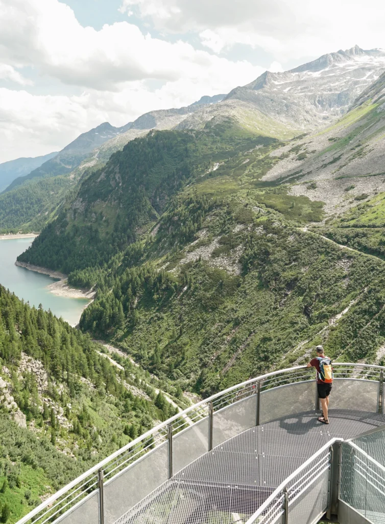 Aan het eind van het Maltatal vind je de Malta Hochalmstrasse. Een panoramische weg die de berg opslingert naar de hoogste stuwdam van Oostenrijk, de Kölnbrein. Wij rijden de pass na onze ochtend in het Wassererlebnispark. De weg is prachtig en de stuwdam spectaculair. We wandelen een stuk over de dam naar het uitkijkpunt.