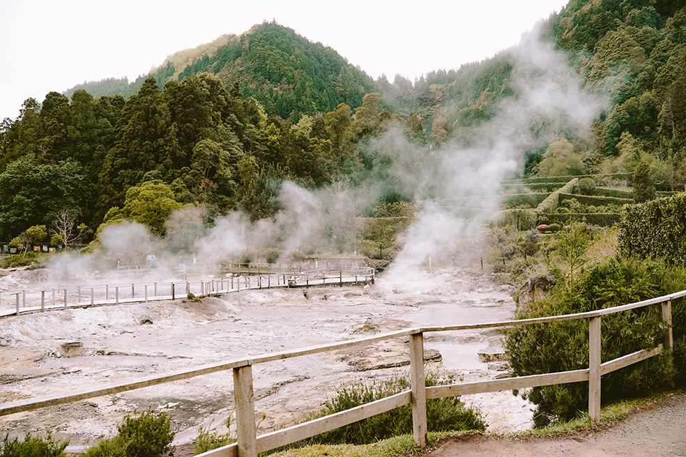 De Azoren zijn ontstaan vanuit vulkanen en door de warmte onder het aardoppervlak zijn er natuurlijke thermische baden op São Miguel te vinden. In Furnas vind je verschillende baden, maar wij gingen naar de warmwaterbaden Centro de Interpretação Ambiental da Caldeira Velha. Deze baden liggen verscholen in het groen en je vindt er een mooie waterval.