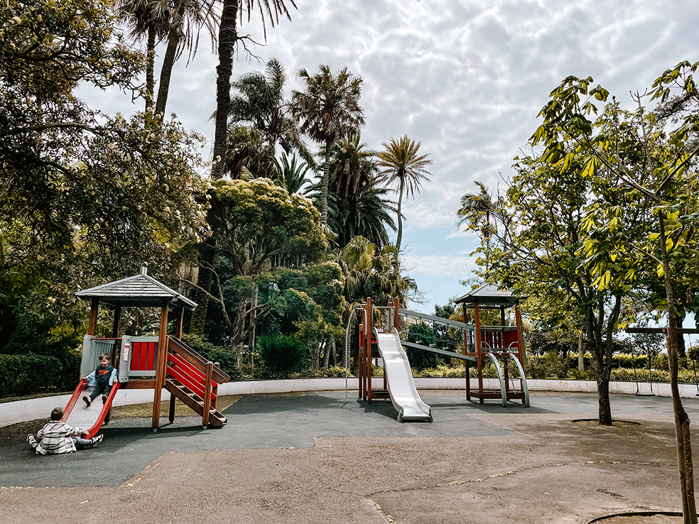 In Ponta Delgada dronken we koffie bij Jardim Natural Food & Coffee in de botanische tuin Jardim Botânico António Borges. Dit is een lekker plekje tussen de bomen met even verderop een speeltuintje.