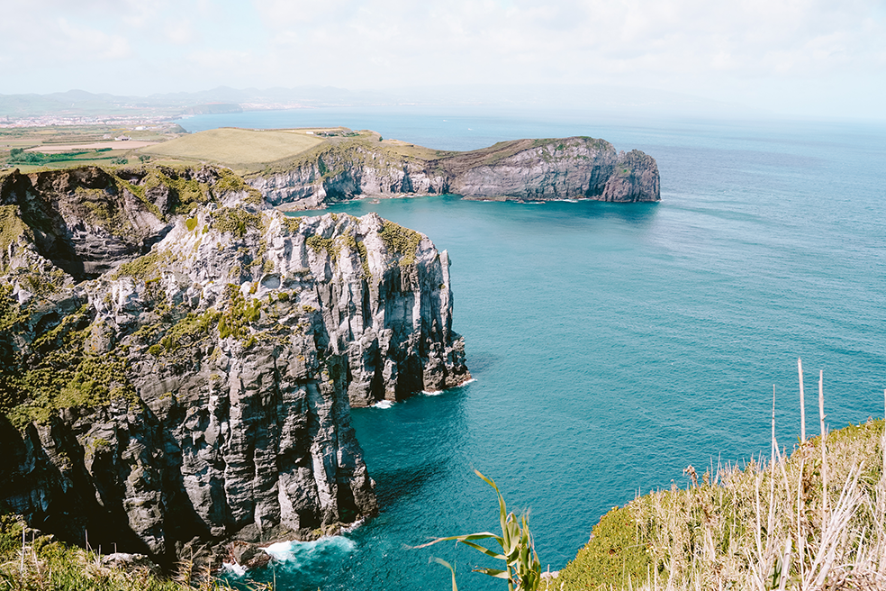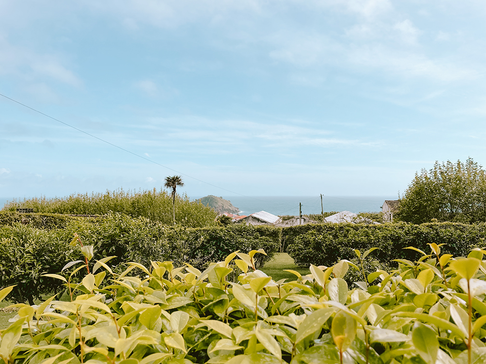 Wij verbleven op São Miguel aan de zuidkust en maakten op een dag een toertje langs het noordelijke deel van het eiland. We belandden bij Fábrica de Chá do Porto Formoso, een theefabriek omringd door theevelden. Ook bekeken we de indrukwekkende kliffen en eindeloze oceaan vanaf het uitzichtpunt Miradouro do Cintrão.