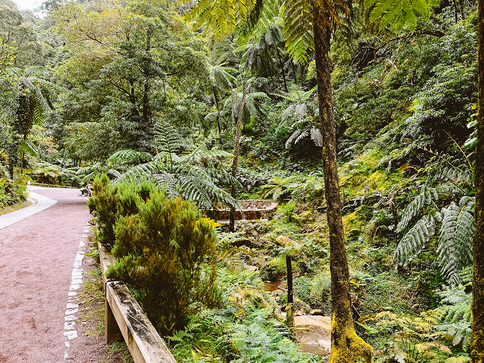 Bij het meer van Furnas starten ook verschillende wandelingen. Wij bezochten natuurpark Grená. Je betaalt daarvoor entree en het voelt wel wat opgezet doordat je over aangelegde paden loopt. Toch vonden wij het enorm mooi en hadden de kinderen plezier dankzij de bruggetjes, watervallen en stenen waar ze over konden klimmen.