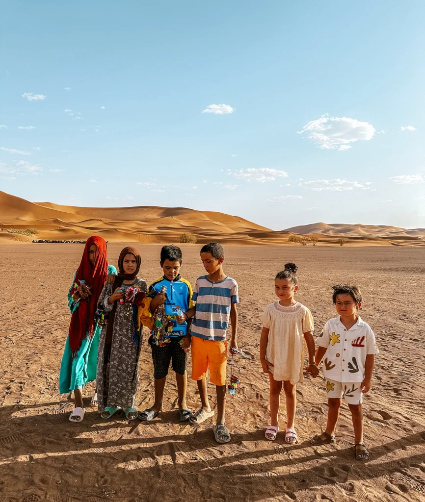 Toch vinden wij Marokko een heel fijn land om met kinderen te zijn. Maar dat zit hem meer in de ervaringen. De indrukwekkende natuur, de drukte van de steden, de oproepen tot gebed die overal te horen zijn, gezinnen die langs de weg fruit en groenten verkopen, een rit door de woestijn op een dromedaris of samen met de lokale bevolking een voetbalwedstrijd kijken. Gewoon rondwandelen, kijken en luisteren naar wat er om je heen gebeurt, levert al zoveel bijzondere momenten op. Marokko is op veel plekken een eenvoudig land, maar door haar prachtige natuur, rijke cultuur en warme bevolking is het tegelijkertijd ontzettend rijk.