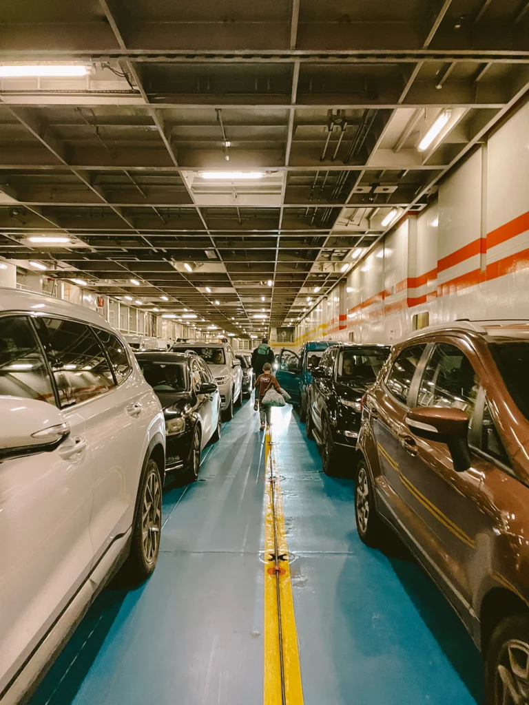 Vanaf een bepaalde tijd wordt er omgeroepen dat je naar het autodek kunt gaan. Wij waren natuurlijk vergeten op welk dek we stonden (dat is vast een klassieker), dus moesten nog haasten om op tijd bij de auto te zijn. Je wilt natuurlijk niet de hele rij ophouden of riskeren dat jouw auto blijft staan en ze een ander dek gaan lossen.