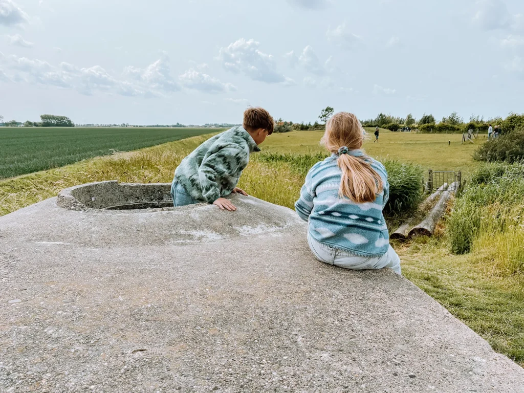 Als het weer ’s middags wat rustiger wordt, rijden we naar Speel- en Bunkerpark Groede Podium. Tussen de bunkers, die deel uitmaakten van de Atlantikwall, vind je een vrij toegankelijk educatief speelpark. Zo spelen onze kinderen in de waterspeeltuin, klimmen ze op de bunkers en aaien ze pony’s in de kleine kinderboerderij.