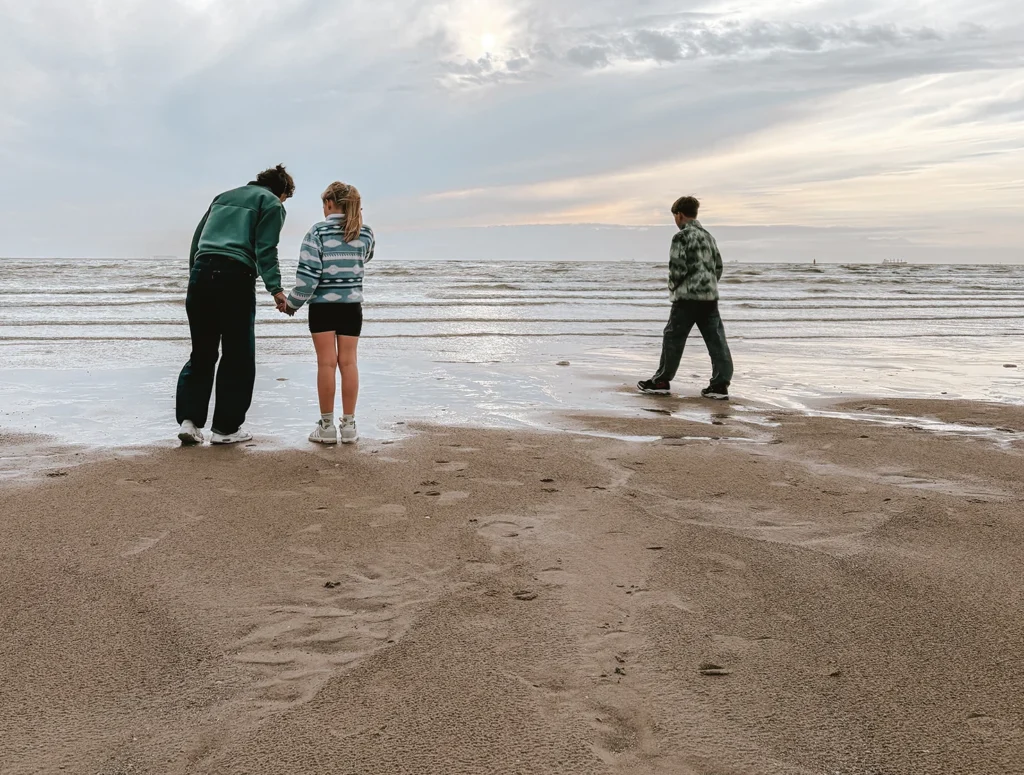 Na het avondeten wandelen we naar het strand. De camping ligt direct aan Natuurgebied het Zwin dat een natuurlijke grens vormt tussen Nederland en België. Hier worden regelmatig haaientanden gevonden dus speuren we aan de rand van de zee naar glimmende zwarte tandjes. Helaas zonder succes, maar het springen over de waterpoeltjes en van de duinen zorgt voor veel plezier bij onze kinderen.