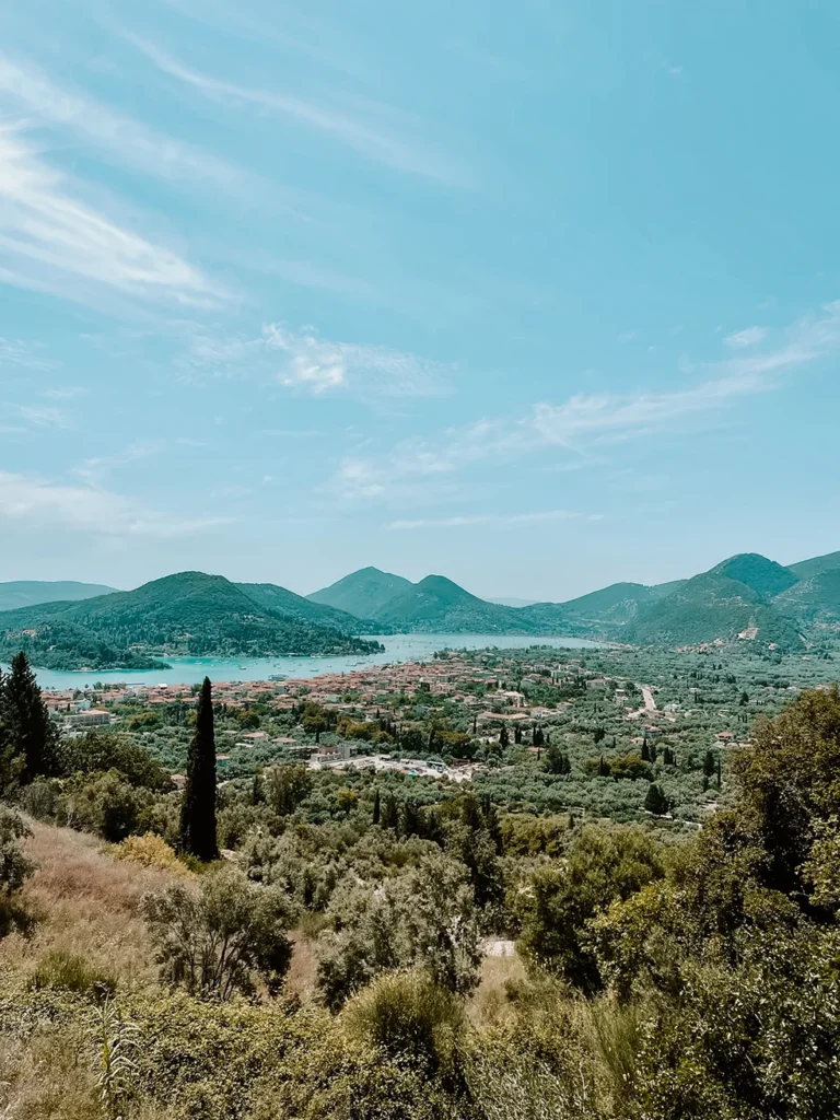 Na Dionisiou reden we naar onze volgende stop: Lefkas (Lefkada in het Grieks). Dit was onze langste autorit van de vakantie, zo’n zeven uur rijden. Met een vaste pond maakten we de overtocht en reden we eind van de middag het eiland op.