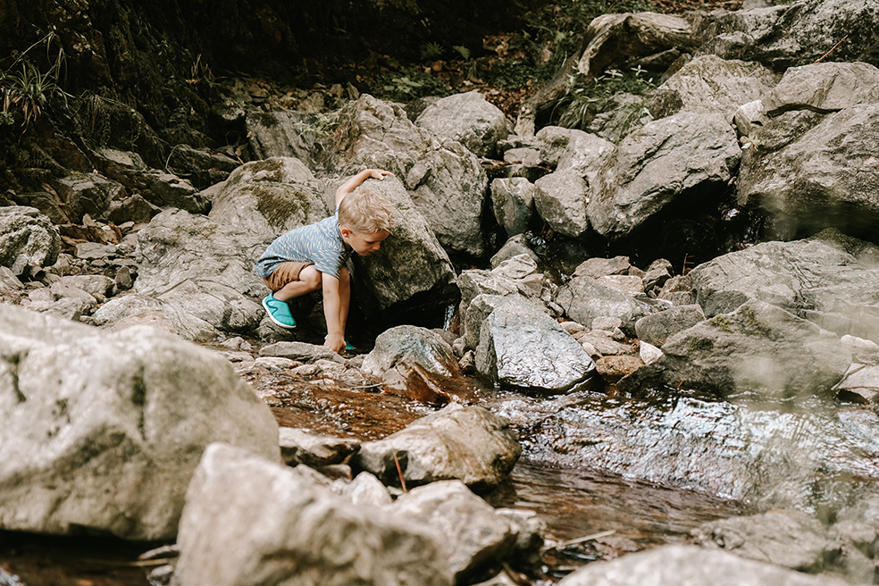 Zwemmen en torens bouwen bij de Menzenschwander-waterval