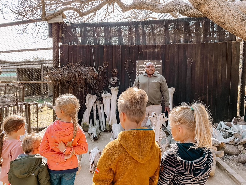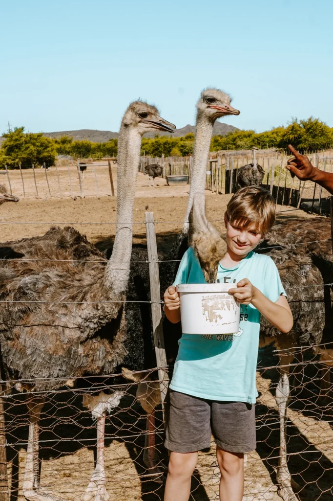 Als Oudtshoorn om één ding bekend staat dan zijn dat de struisvogelboerderijen die je hier overal vindt. En natuurlijk bezoeken ook wij er eentje. Bij struisvogelboerderij Highgate leren we hoe we mannetjes en vrouwtjes uit elkaar kunnen houden, dat struisvogeleieren zo sterk zijn dat zelfs een volwassenen er met gemak op kan staan zonder dat ze breken en mogen we, hét hoogtepunt van onze kinderen, de struisvogels voeren. Een heel leuk uitje als je in Zuid-Afrika bent met kinderen!